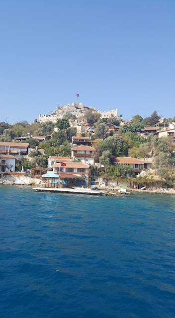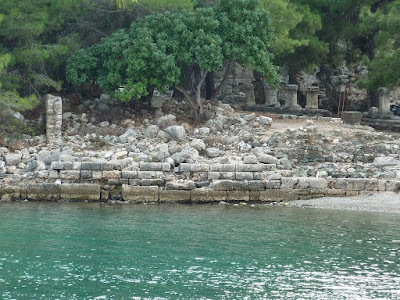 Ihailemme Kekovan vedenalaisia raunioita. Maanjäristys on suistanut roomalaisten rakennelmia mereen. Alueella ei saa uida, joten yritämme nähdä jotain veneen pohjan lasi-ikkunoista. Menemme vielä ´siniseen´ luolaan. Vietämme siestaa kipparin vaimon paistaessa meille tilaamaamme kalaa. Vierailemme vielä Kalen kaupungissa, jossa jyrkkiä portaita kiipeämme linnoituksen juurelle katsomaan lyykialaisia hautoja. Naiset myyvät portailla käsitöitään paikassa, jonka kohdalle hengästynyt matkailija väkisin pysähtyy.