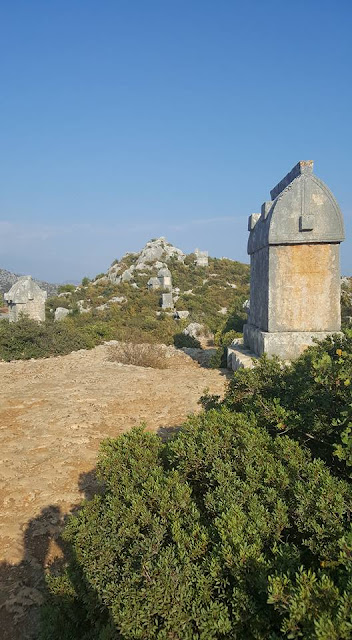 | Lyykialaiset sarkofagit ovat kukkulan laella |