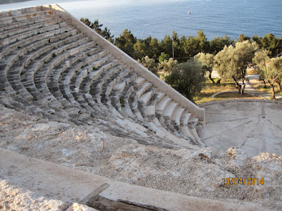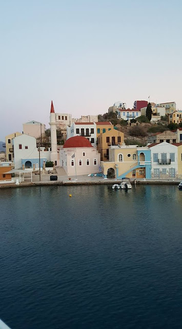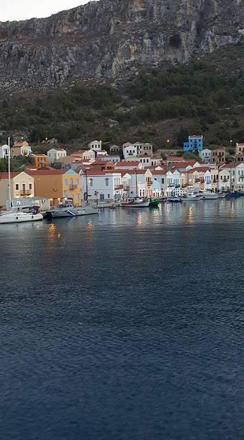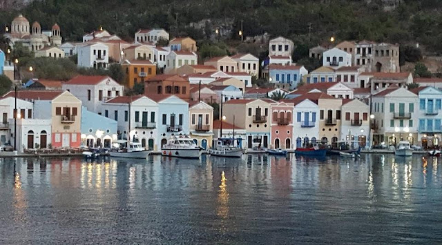 Seuraavana päivänä ohjelmassa on vierailu Kreikan Meisissä. Hotellista ehdotettiin ajankohdaksi iltaa. Näin meille jää aikaa katsastaa lähellä oleva amfiteatteri ja kiertää kaupungista pitkälle mereen kurkottava niemi huviloineen. Kaikki ovat hyvin hoidettuja, jyrkissä rinteissä, veden äärellä. Voi hyvin kuvitella alueen houkuttelevan taiteilijoita. Meisiä varten joudumme toimittamaan passit etukäteen leimattaviksi. Saamme ne takaisin laivaan noustessa. Matkaamme kohti laskevaa aurinkoa runsaan puolituntia. Hotellimme aamiaishuoneesta saari näyttää olevan lähempänä.