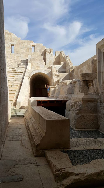 Rakennukset ovat pääosin roomalaisten ajalta.Tapasimme joukon uteliaita turkkilaisia opiskelijoita. Jopa elämän tarkoitukseen olisi haluttu kantaa. Muuten alueella liikkui nytkin melko vähän matkailijoita. Meille jää nyt sen verran aikaa, että ajan vielä Antalyan vanhan kaupungin satamaan. Ruokailemme sataman yläpuolella tutussa ravintolassa, josta avautuu huikea näkymä alas satamaan ja vuorille.