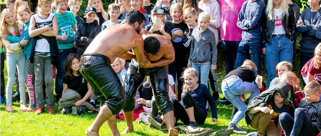 Pärnu Koidula -puisto tarjosi upean paikan turkkilaisille öljy painijoille, eli yağlı güreş -esimerkki-näyttelyssä, jossa virolaisen rypsiöljyn voittamat joukot esittivät UNESCO: n maailmanperintöluettelossa mainitun urheilun.
