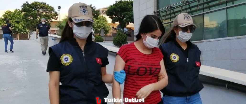 Dalya Mahmut Muslum, 21, ryhmän entisen johtajan Salih Muslumin sukulainen ja PKK-terroristin Gülten Alataşin henkilökohtainen henkivartija, punaisella ilmoituksella etsitty, siirrettiin Mersinin provinssin sairaalaan terveystarkastuksiin laajojen turvatoimenpiteiden jälkeen tuomioistuimen ilmestymisen jälkeen. .