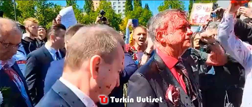 Voitonpäivää juhlistaneen Venäjän suurlähettilään naama töhrittiin punaisella maalilla. Mihin puolalaiset oikein pyrkivät? Katso video!