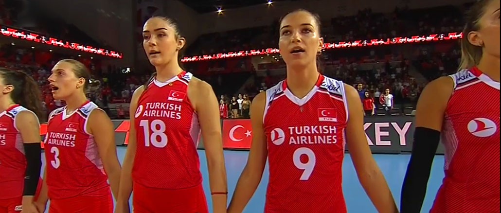 Turkin naisten lentopallojoukkue. Kuva kaappaus Turkin TV:n lähetyksestä.