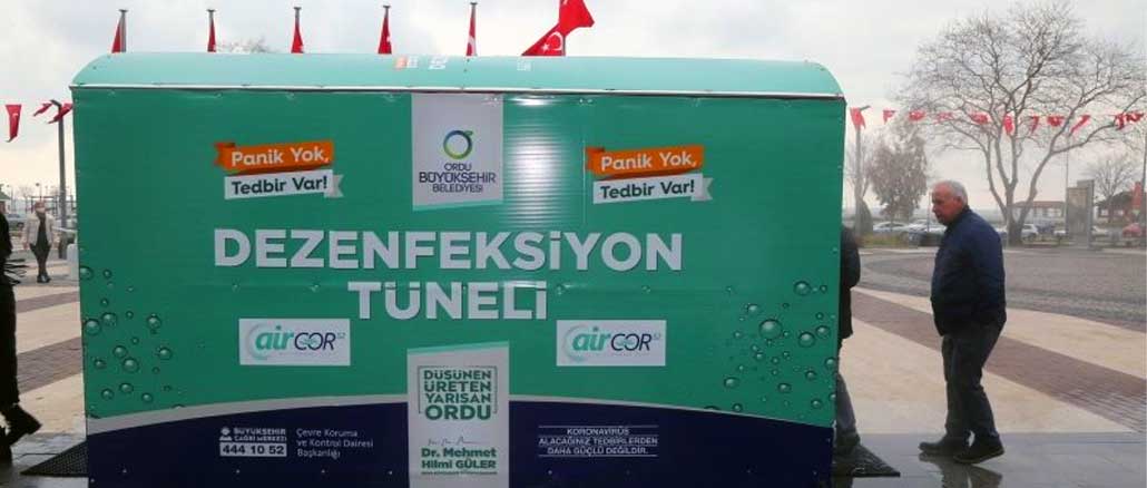 Mustanmeren rannikolla sijaitseva Ordu kaupunki tarjoa kansalisille desinfiointi tunnelin. Asukkailla on ollut suurta kiinnostusta. Laite on suunniteltu Turkissa. Yhtiö on rekisteröimässä laitteen. Se desinfoi kadulla ihmisiin vaatteisiin tartunneita viiruksia ja muita epäpuhtauksia. Tuotteella ei ole sivuvaikutuksia. Tuoten nimi on ”Aircor52 Dezenfekte Tüneli”. Laite on tarkoitus asentaa kaikkiin kaupunkeihiin Turkissa. Laite on kehitetty ja edelleen kehitetään Gebze Teknillisessä yliopistossa.