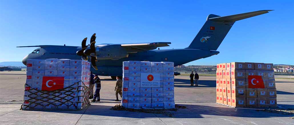 Turkin puolustusministeriö on ilmoittanut että Turkin asevoimien rahtikone on lähtenyt viemään lääketieteellisiä avustustarvikkeita Englantiin. Turkki auttaa Balkanin ja Euroopan maita.