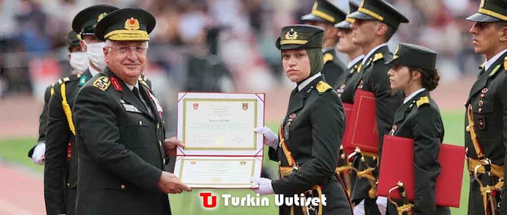 Ylipäällikkö kenraali Yaşar Güler esitti luutnantti Öztürkille tutkintotodistuksen seremonian aikana.