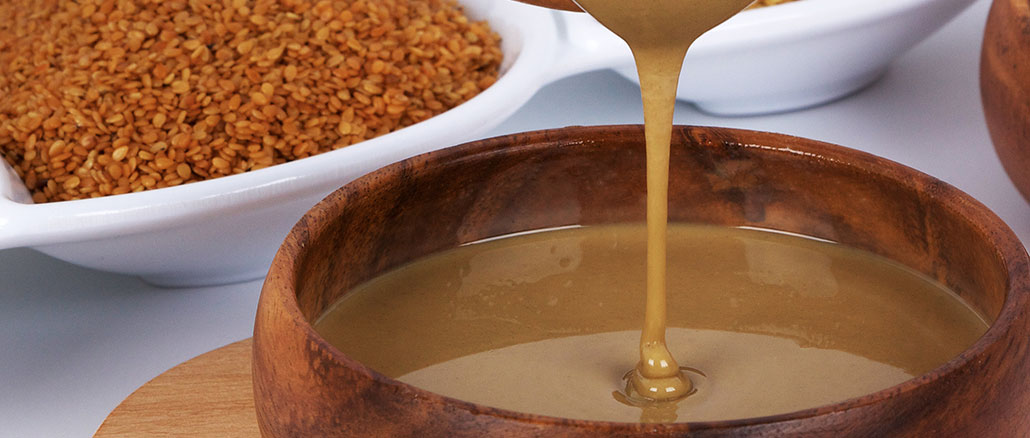 3 rkl vaaleaa seesamitahnaa (tahin) Tahini on jauhetuista seesaminsiemenistä tehtyä tahnaa. Se on tärkeä raaka-aine hummuksessa, halvassa ja muissa Lähi-idän ruoissa. Tahinia on kahdentyyppistä: toinen valmistetaan kuorituista seesaminsiemenistä, toinen kuorimattomista. Kuorimattomista siemenistä valmistettu on rakenteeltaan rakeisempaa, maultaan karvaampaa ja siinä on enemmän ravintoaineita esim. kalsiumpitoisuus on korkea. Käytä salaattien, hummusin ja baba ganoushin kanssa sekä kastikkeena ja kakuissa.