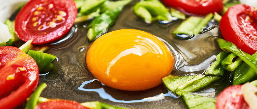 Riko munat tomaattiseoksen pinnalle, peitä pannu kannella ja kypsennä, kunnes munat ovat juuri ja juuri hyytyneet.