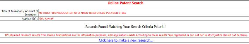 Search Title/Abstract: METHOD FOR PRODUCTION OF A NANO-REINFORCED POLYMER STEEL